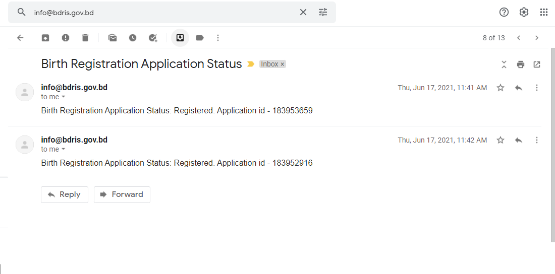 | জন্ম নিবন্ধনের আবেদনের বর্তমান অবস্থা। | |